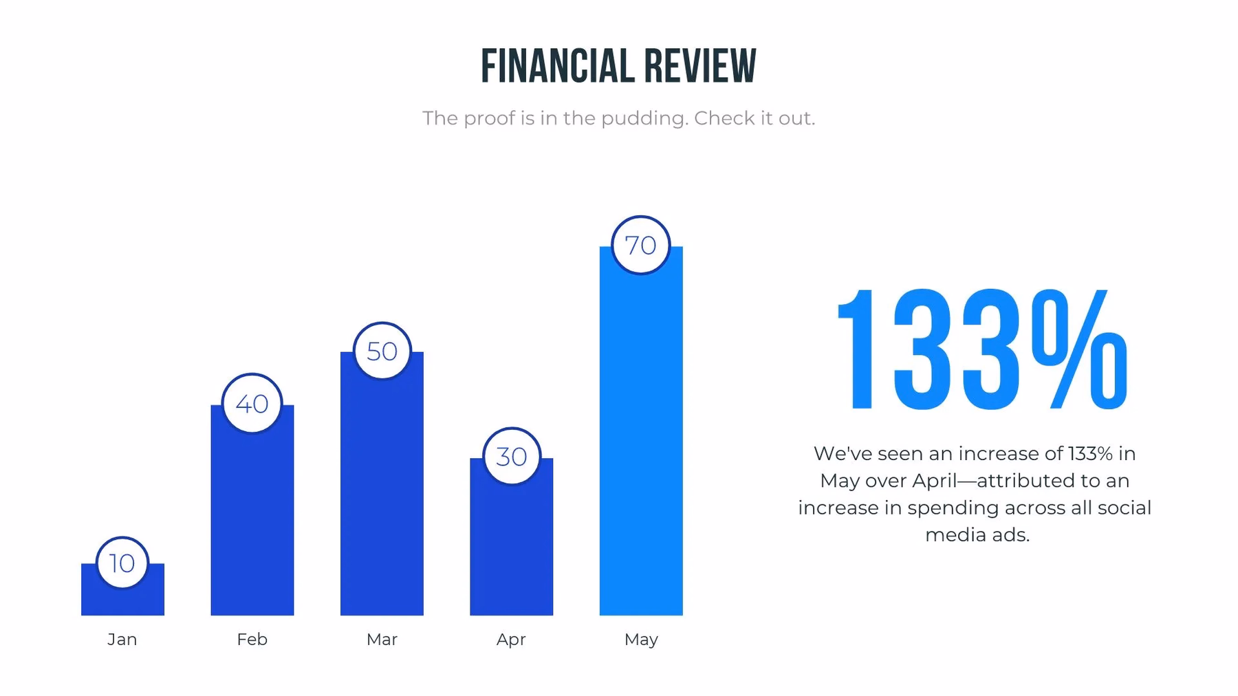 Just as a bar graph can help demonstrate wins, it can also be used to call out missed opportunities or gaps. If you’re noticing a downward trend, you can use a bar graph to add context to the declining numbers and point out the opportunities for improvement in your team’s strategy. By acknowledging the gaps and getting in front of the numbers, you can help soften the blow and spin it into a positive for the sake of your story.