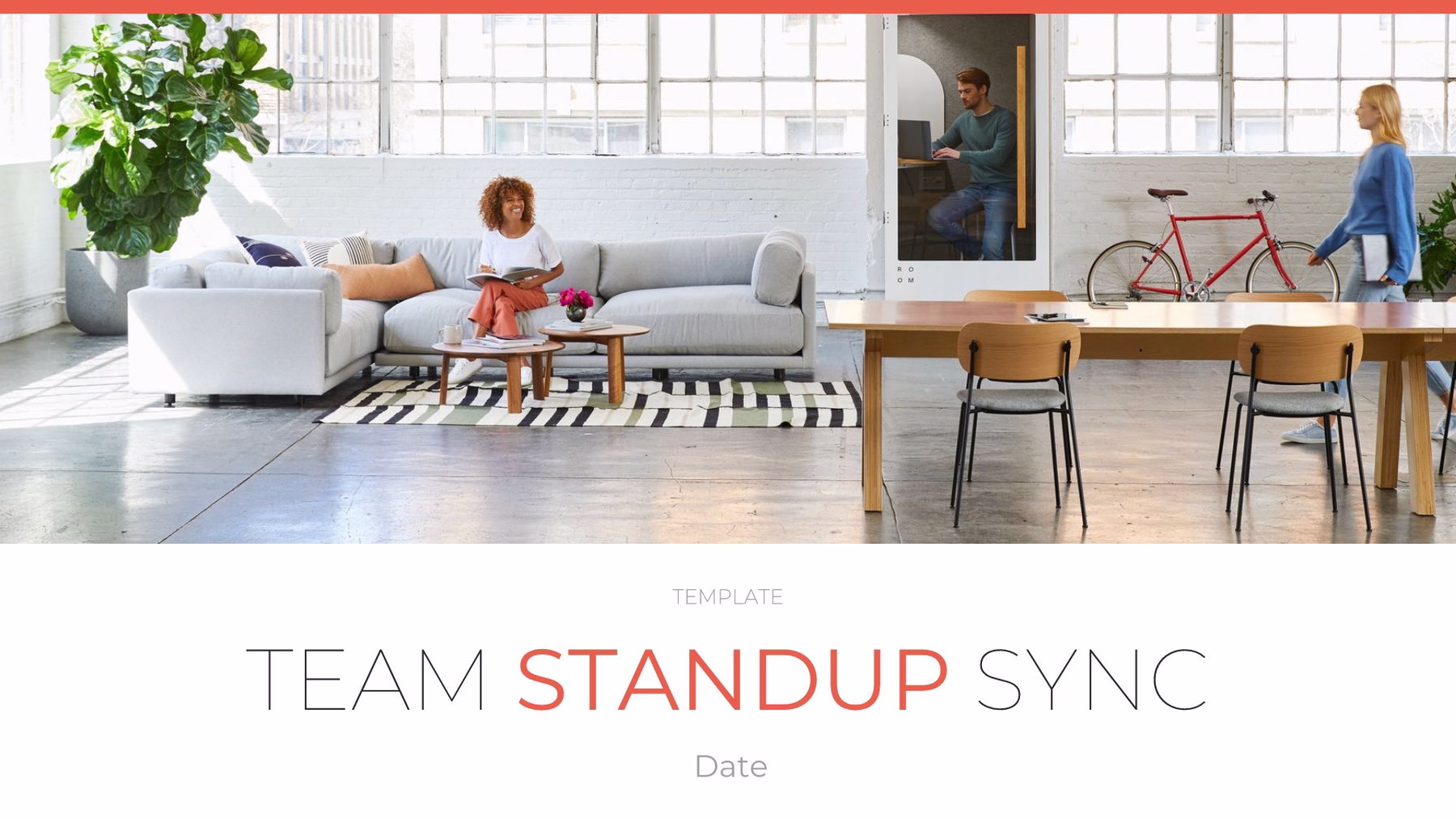 Make your daily sales meetings more effective by starting with a template that lets teammates easily track what's going on and how to best optimize processes. Our team stand up template is a pre-built, customizable presentation optimized for team meetings and collaboration. Your sales team meeting will run smoothly with an agenda slide, talking points slide, deliverables update slide and more to keep everyone organized and focused.
