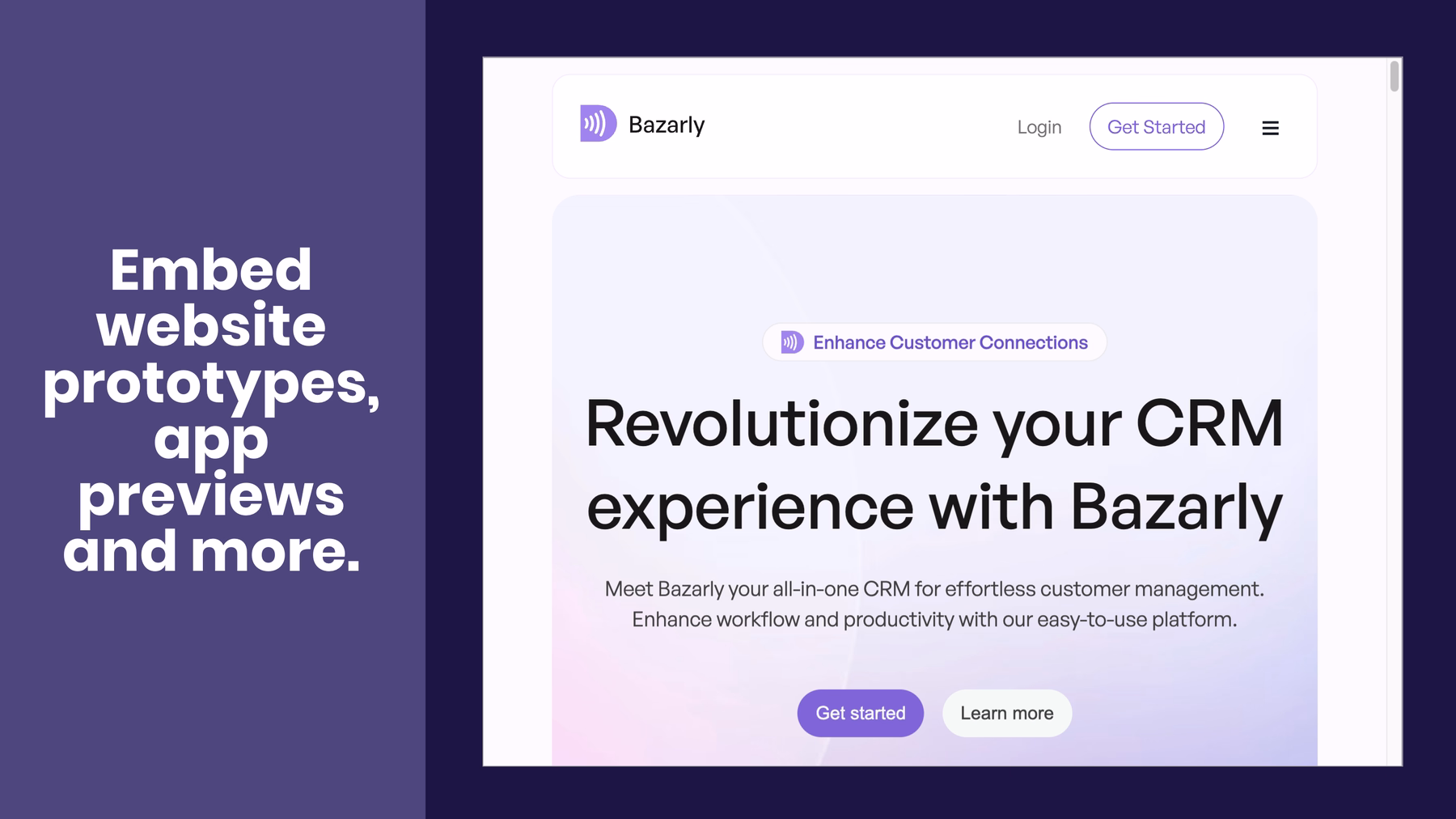 The webview slide is a live and interactive way to showcase designs or new webpages. Designers can use this Smart Slide to get buy-in from stakeholders, or share a portfolio of work to cross-departmental teams.