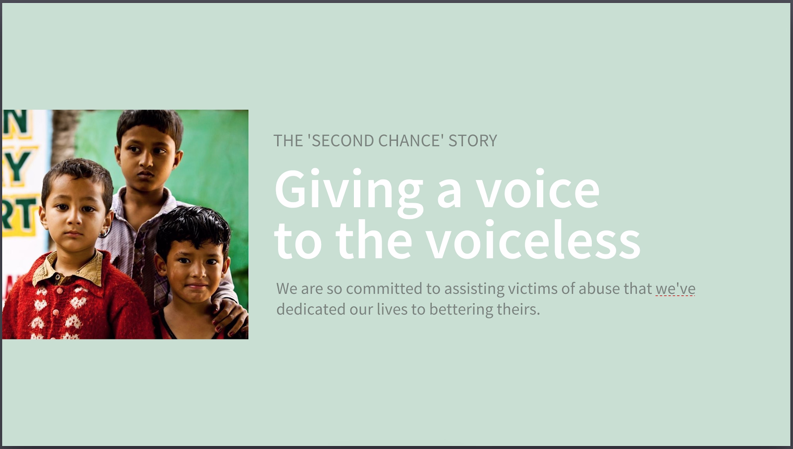 Next we used a beautiful.ai template to make a Nonprofit's “Mission Statement” page: