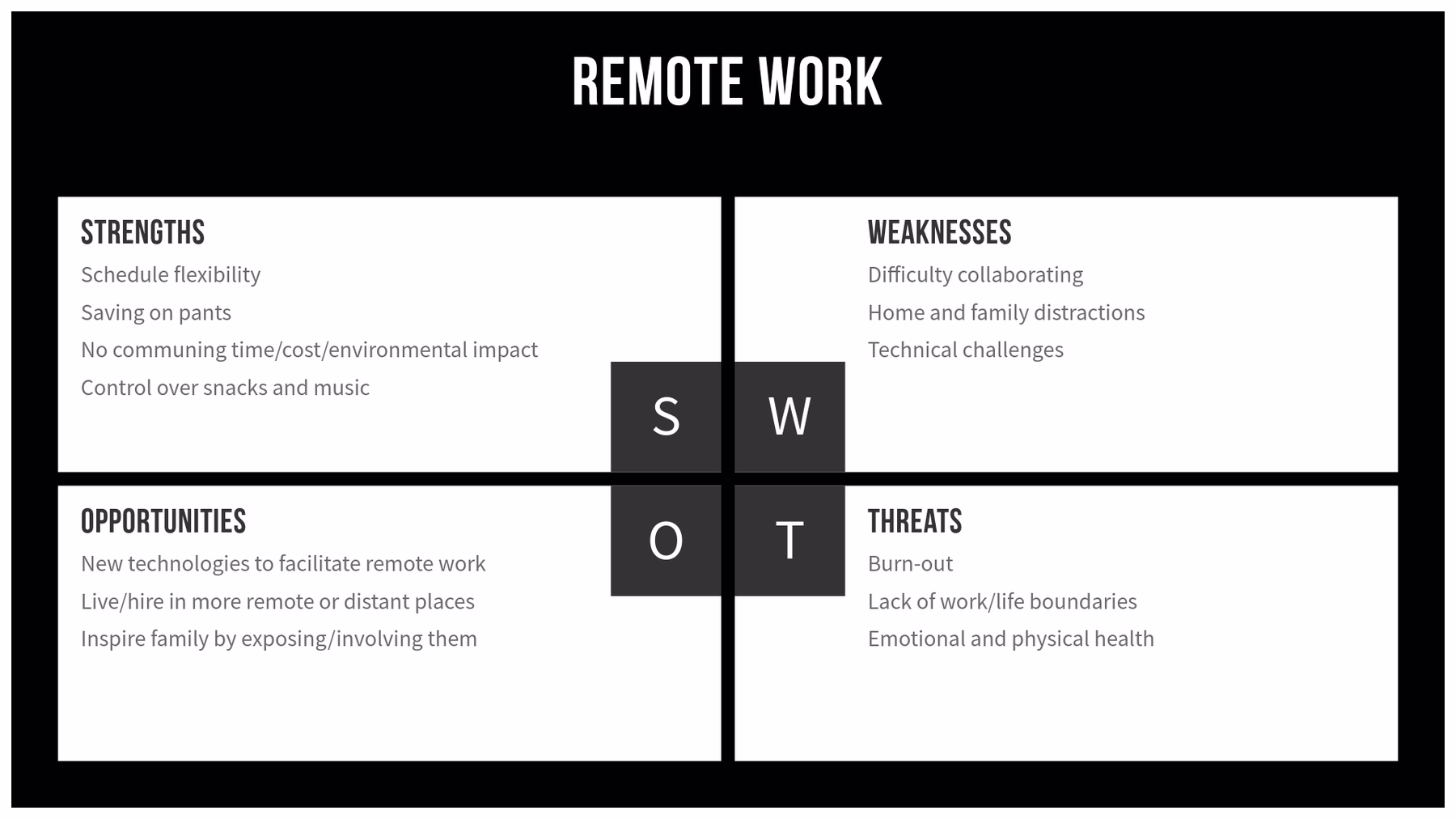Beautiful.ai’s SWOT analysis Smart Slide is both a classic and crowd favorite. SWOT is an evaluation model used to help identify strengths, weaknesses, opportunities, and threats to a business, project, or opportunity. A SWOT analysis template simplifies the process of designing your own SWOT matrix for a presentation so you can focus on the content versus design.