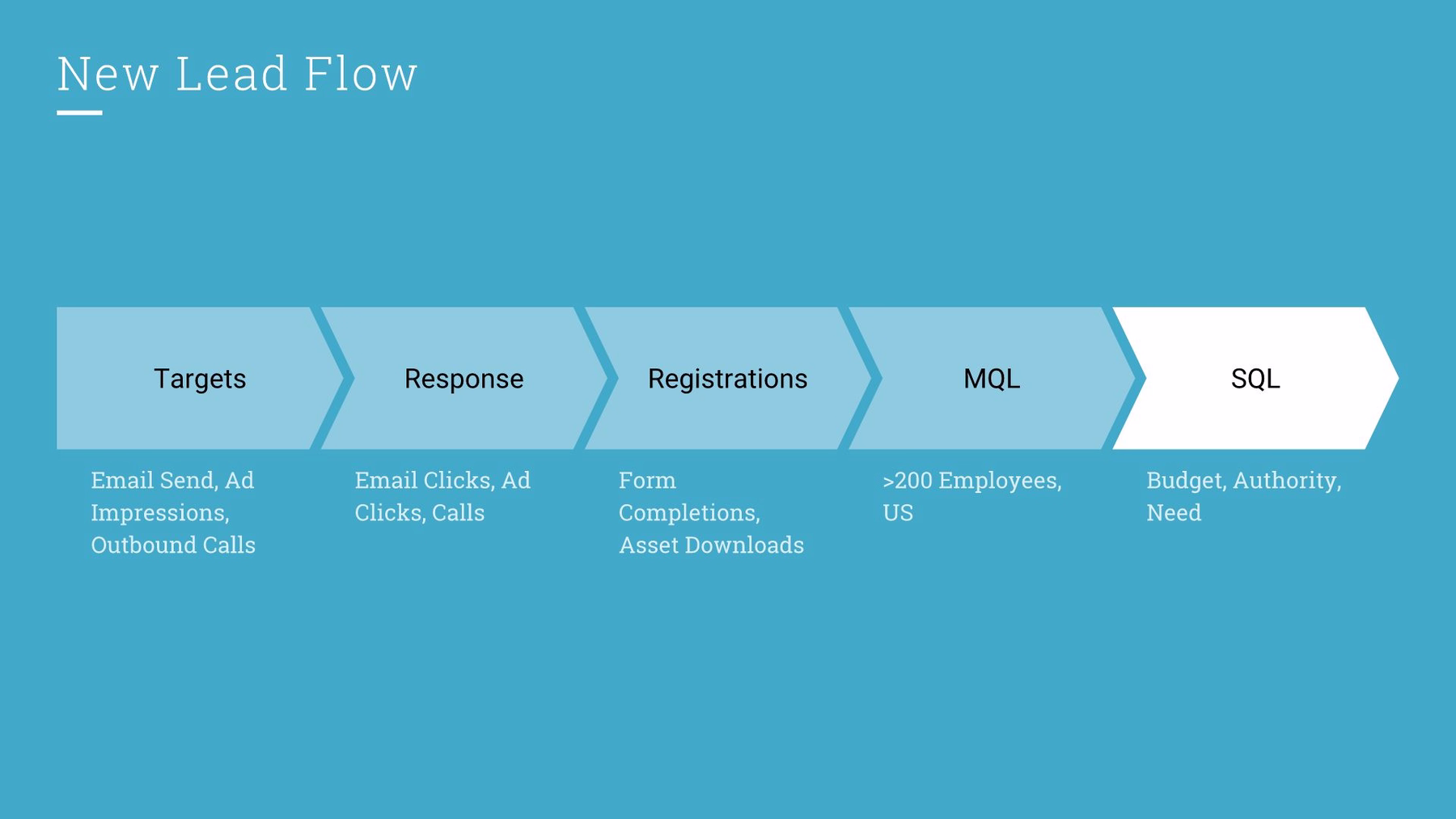 Goals make a marketer's world go 'round. Make sure you have a set of metrics that enable you to measure progress at each stage. Start with your Target set and work your way down through Responses and then to your qualification stages. Responses are a good near-term proxy for how well your prospects are engaging with your content and message. It's a safe bet that if this metric is faltering there is something wrong either in your assumptions or your campaign execution. Don't be afraid to pause a campaign if this doesn't look right.