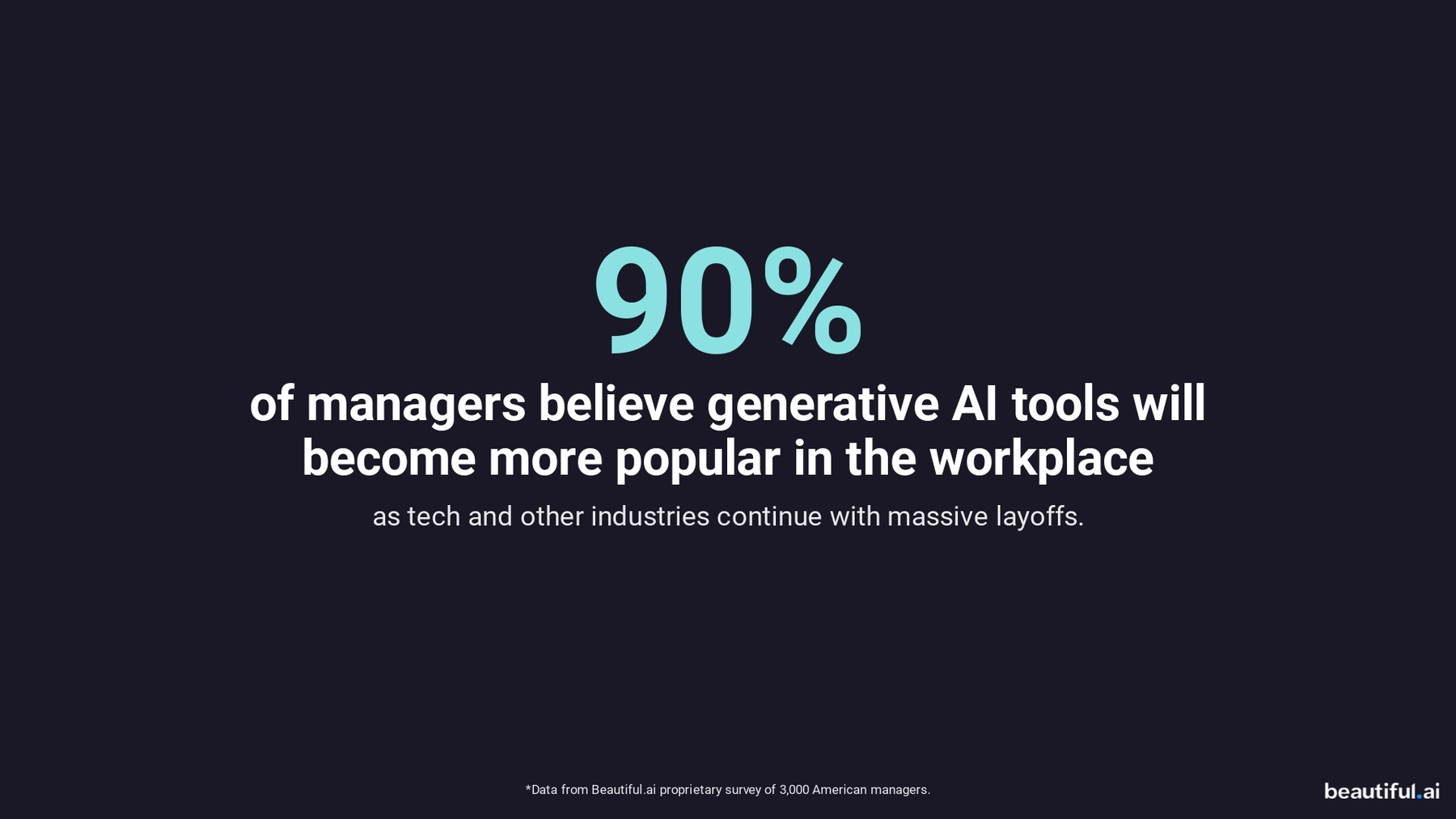 In reality, 90% of managers believe that generative AI tools will become more popular in the workplace as tech and other industries continue with massive layoffs. This means that we may see more job opportunities specific to AI roles. Things like AI engineers or AI quality assurance engineers can be helpful for companies who have integrated artificial intelligence into their products or services. Similarly, teams may bring on AI content managers to hone in on the most relevant prompts, produce the best results, and make necessary edits to the content to maintain brand integrity. Being open to, and aware of, these future opportunities can help managers stay ahead of the curve.